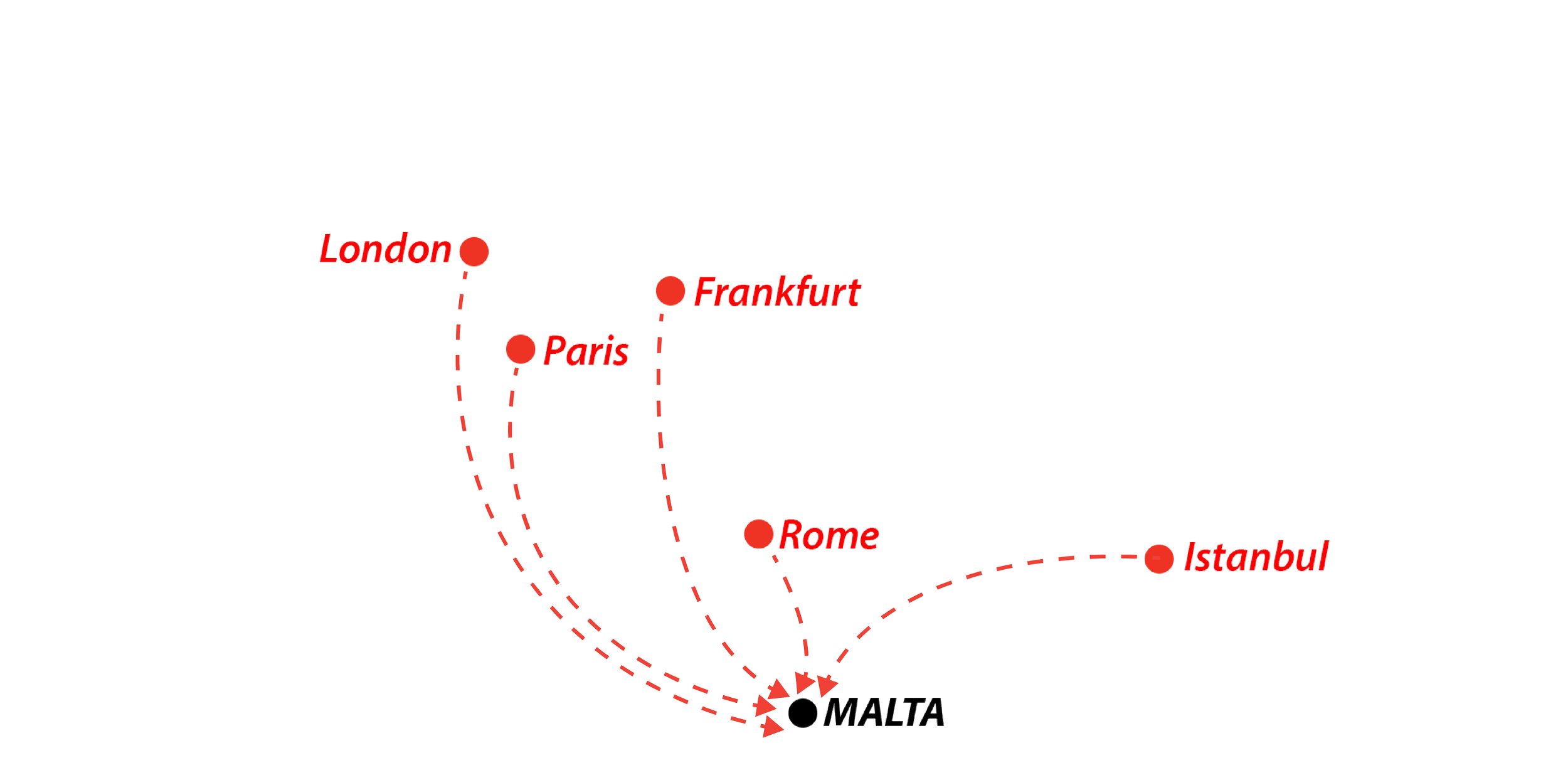 We recommend looking at flights going through London, Paris, Rome, Istanbul, or Frankfurt, however, many more connections exist!